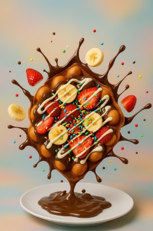 | Вафля С самыми свежими фруктами и превосходным шоколадным соусом |